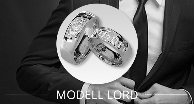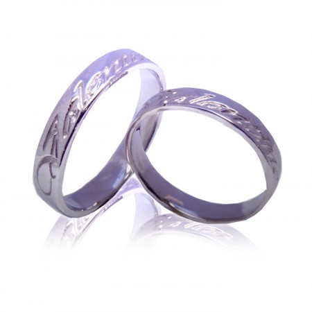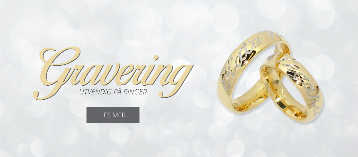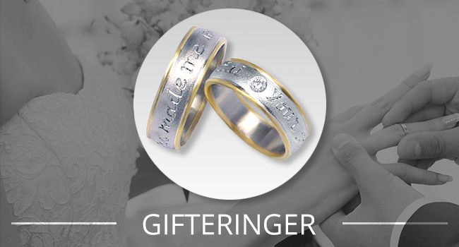 Nydelige klassiske gullringer i solid utførelse. Her er det også lagt hvit platina nedi teksten. Gotisk skrift-type. Buet overflate innvendig og utvendig gjør dem behagelige å ha på.