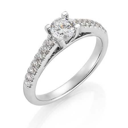 Dette er en kraftig og elegant alliansering i hvittgull. 4 Solide klør som holder diamanten litt opp fra selve ringen gir en ekstra fin virkning.